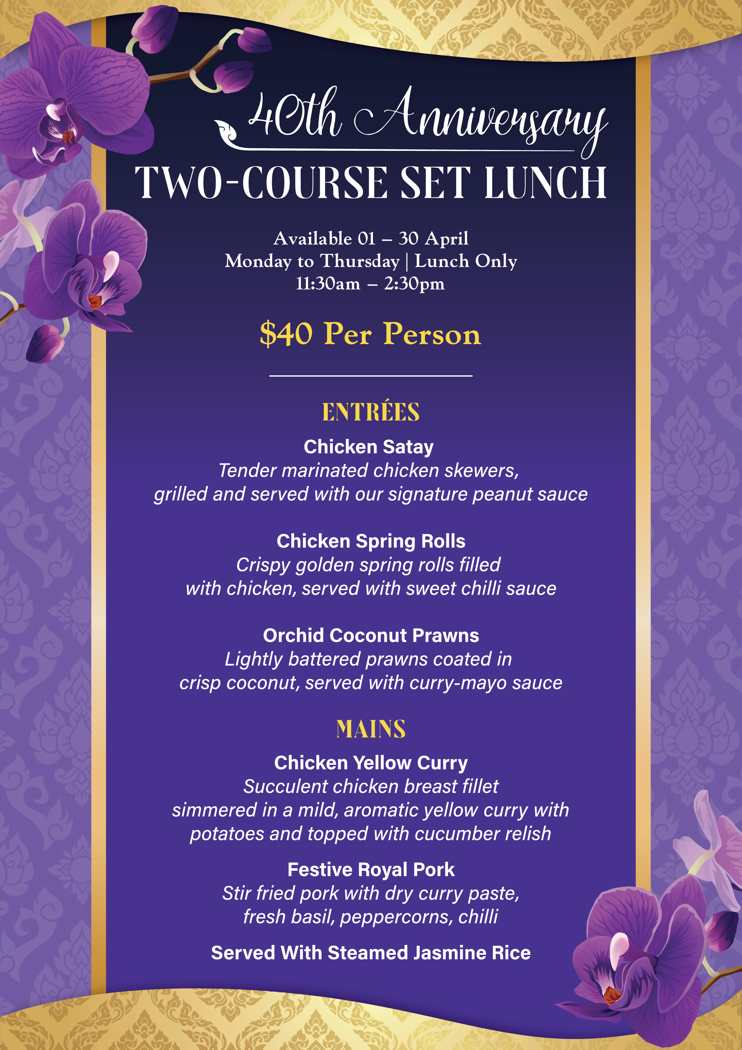 Monday to Thursday, Lunch only